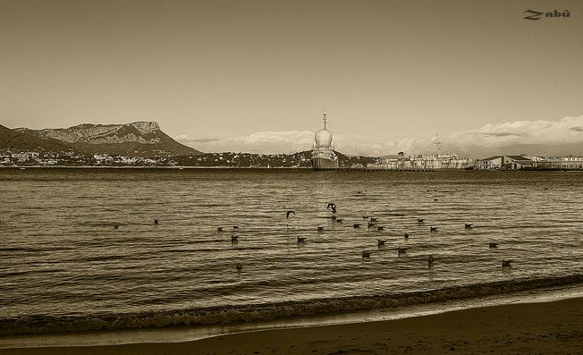 Photo noir et blanc sépia du Port de Saint-Mandrier, vue sur La Rade de Toulon (réf n°2.12)
