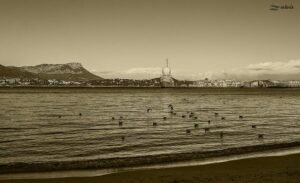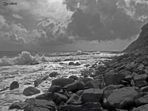 Plage de La Coudoulière à Saint Mandrier sur Mer, Composition Photo Noir et Blanc Argenté (réf n°: 8.20)