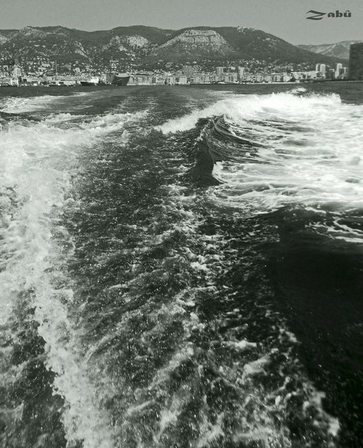 Photo La Rade de Toulon en noir et blanc – Prise de vue instantanée depuis le bateau bus direction st-mandrier-toulon (n°10.11)