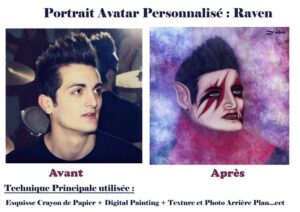 Raven – Portrait Avatar Personnalisé – Technique utilisée (réf: 023.1)